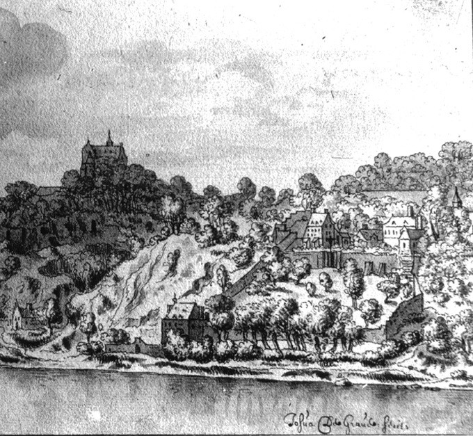 - De twaalf schilderingen worden door prof. Timmers (zie catalogus onder 2.) toegeschreven aan Josua de Grave (1643-1712). De datering kan dan 1669-1671 of 1676 zijn, toen De Grave aantoonbaar in Maastricht verbleef. Vreemd genoeg meende Timmers dat het rivierlandschap op de achterkant (of voorkant) 19e-eeuws was, dus niet geschilderd door De Grave.